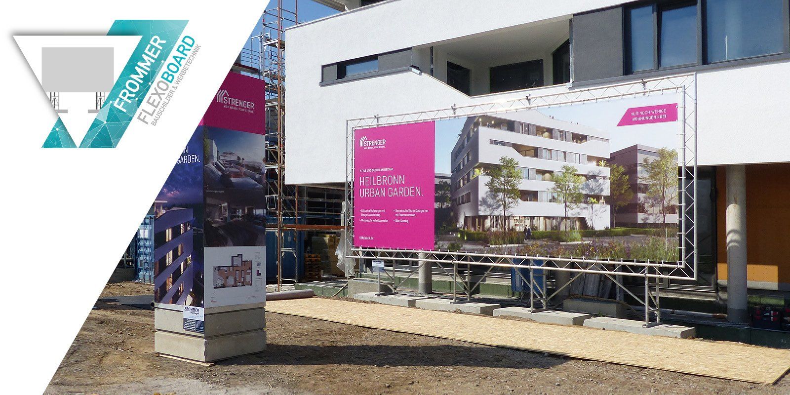 Das ist die Welt der Frommer XXL Werbetechnik: Planung, Konstruktion, Digitaldruck, eigene Herstellung der Aluminium-Traversen. Unsere Lösungen: Bauschilder, Werbeanlagen, Reklameschild, Planenanlagen, Banner, Schilder, Winkelanlagen, Winkelbauschilder, Bauzaun, Werbezaun, Bausichtschutz, Werbewand, Absperrwand, Absperrungen, Baustellenwerbung, multifunktionale Masten, Baustellenüberwachung, Kameramast, Werbeturm, Universalturm, multifunktionaler Turm, Baustellen-Beleuchtung, Kommunikation, mobile Fahne, Fahnenmasten, Flagge, Flaggenmast, Werbefahne, Werbeflagge, mobile Kabelbrücken aus Alutraversen, Straßenüberführung, Brücke für Strom, Baustellenbrücke, Portal für Einfahrt, Ausfahrt / Eingang, Ausgang, Beschilderung für Fußgänger, Sonderkonstruktionen, Stahlunterkonstruktionen, Leuchtkasten, Pylone, Fassadenwerbung, Leuchtwerbung, Containerschilder, Containerwerbung, Bannerwerbung, bundesweiter Service: Vermietung, Verkauf, Montage, Installation, Wartung, Reparaturen, Entsorgung in Baden-Württemberg, Bayern, Hessen, Rheinland-Pfalz, Saarland, Region Stuttgart, Ludwigsburg, Bietigheim-Bissingen, Heilbronn, Frankfurt, Mainz, Wiesbaden, Saarbrücken, München, Nürnberg, Freiburg, Bodensee-Region usw.